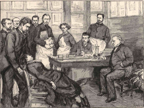Charcot et ses élves pendant une consultation